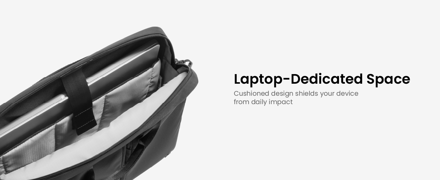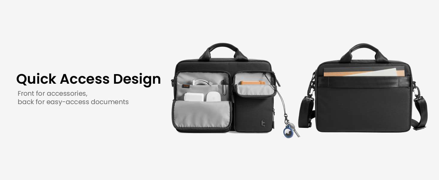 Một trong những điểm cộng lớn của Túi Tomtoc A33 là sự tiện lợi trong cách bố trí ngăn chứa. Túi được thiết kế với nhiều ngăn khác nhau: ngăn chính cho laptop, ngăn phụ phía trước và phía sau dễ dàng truy cập, ngăn lưới có khóa kéo bên trong, cùng các khe nhỏ dành cho sạc, cáp, bút và sổ tay. Tất cả đều được sắp xếp khoa học, giúp bạn dễ dàng lấy ra hoặc cất giữ đồ dùng một cách ngăn nắp.